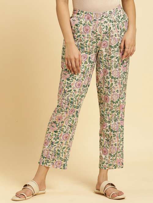 women multi color cotton blend pleated trouser