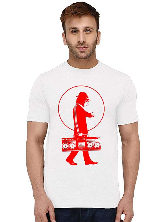 - » men round neck front print t-shirt
