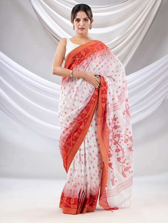 women's self design white colored saree with blouse - 20167109 - Very Small Image - 1