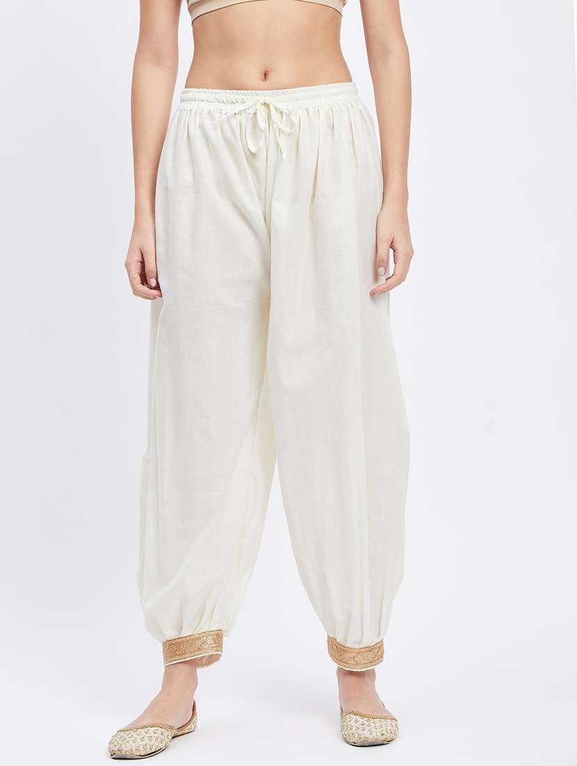 white cotton regular salwars - 19955064 - Very Small Image - 1