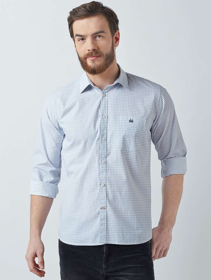 - » blue checkered casual shirt