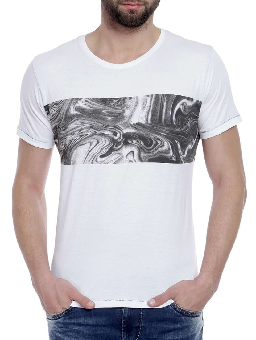 - » white cotton chest print t-shirt