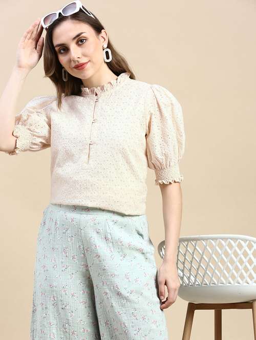 - Look trendy wearing this top from De Moza and get this awesome collection in cream colour.
