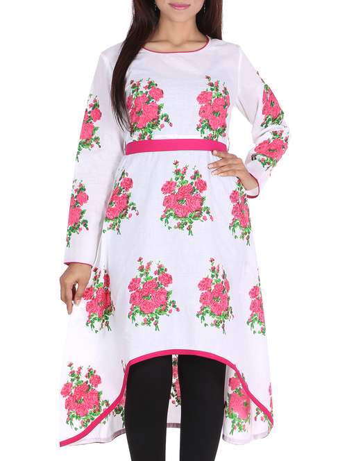 - » white color cotton high low kurta