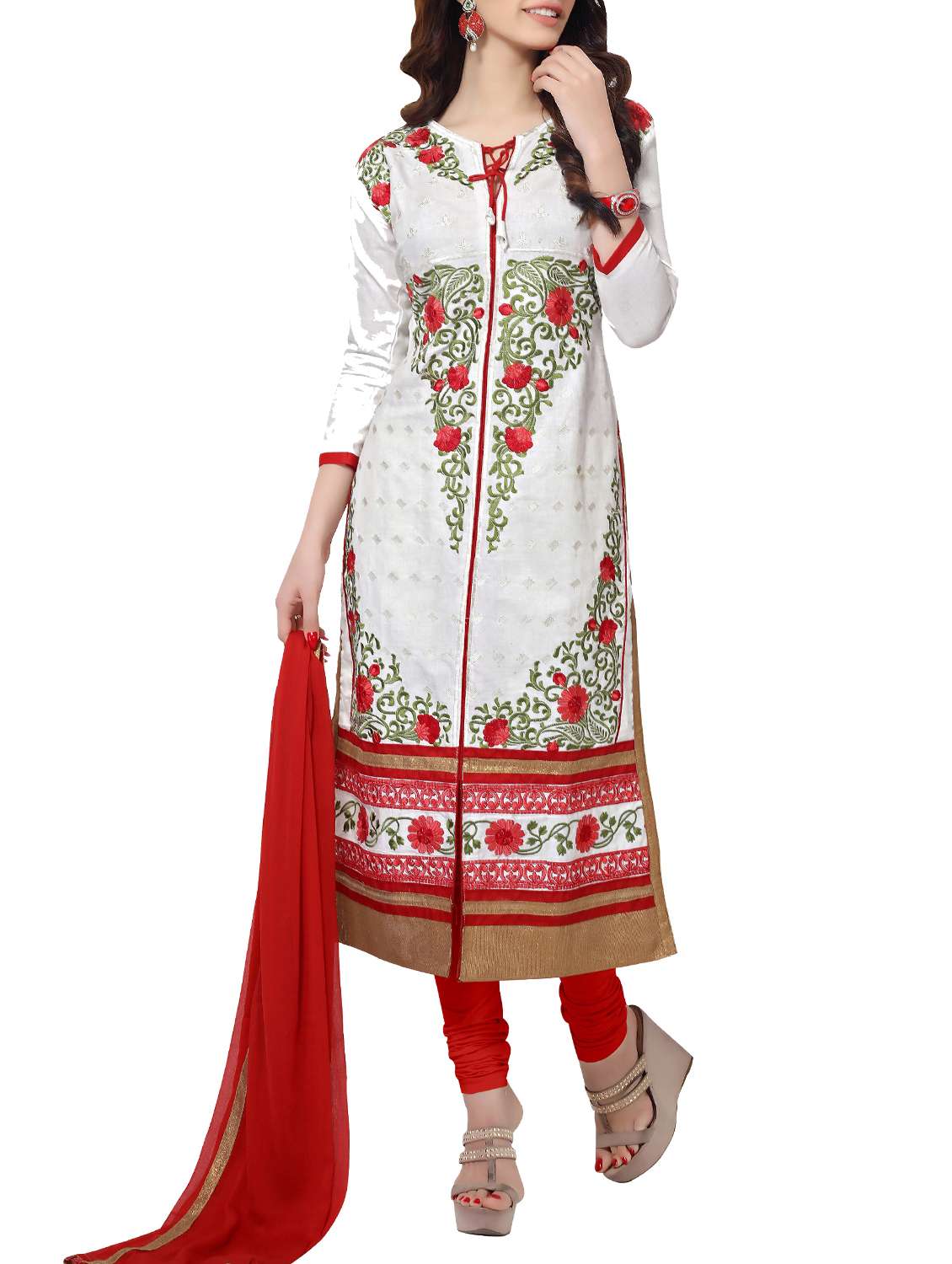 - Look ultra gorgeous in unstitched suits from Kavya and grab these beautiful suits in white colour.