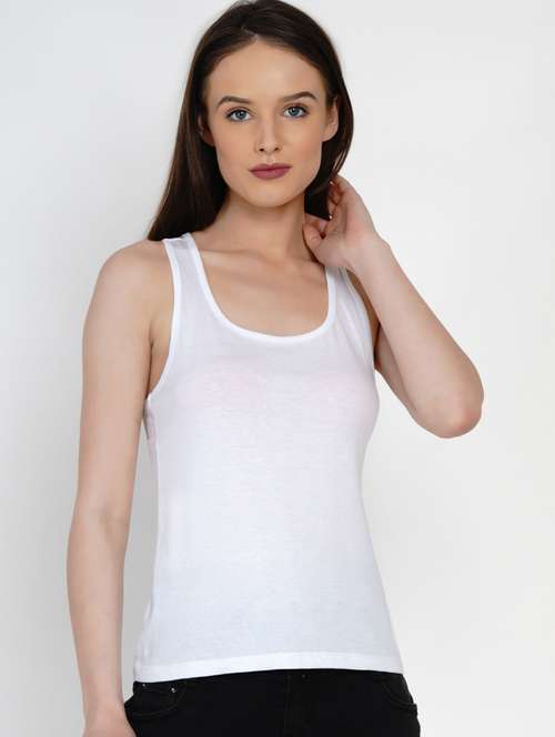 - » women solid white cotton tank top