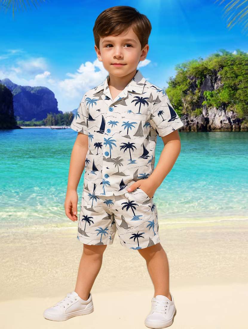 - » boys printed shirt & shorts co-ord set