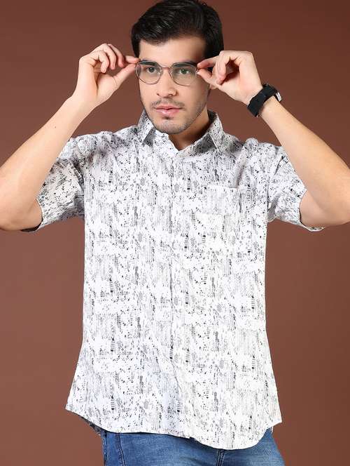 - » men printed short sleeve slim fit casual shirt