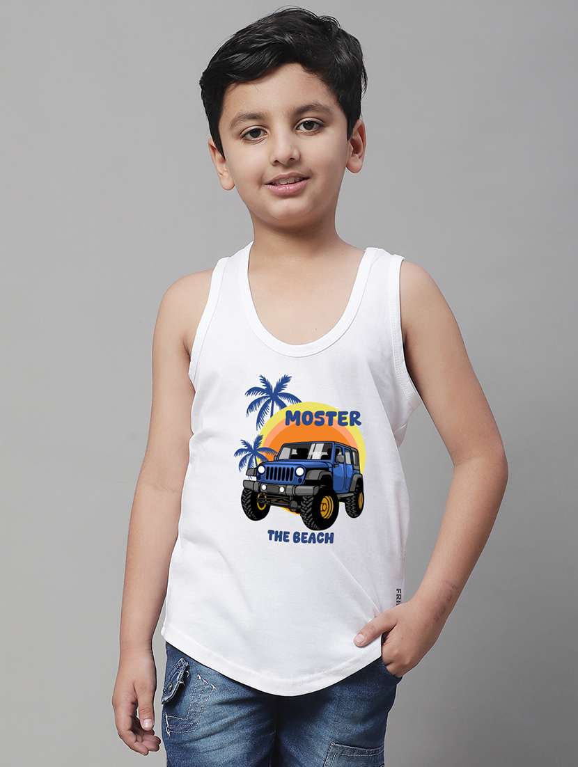 boys scoop neck printed vest