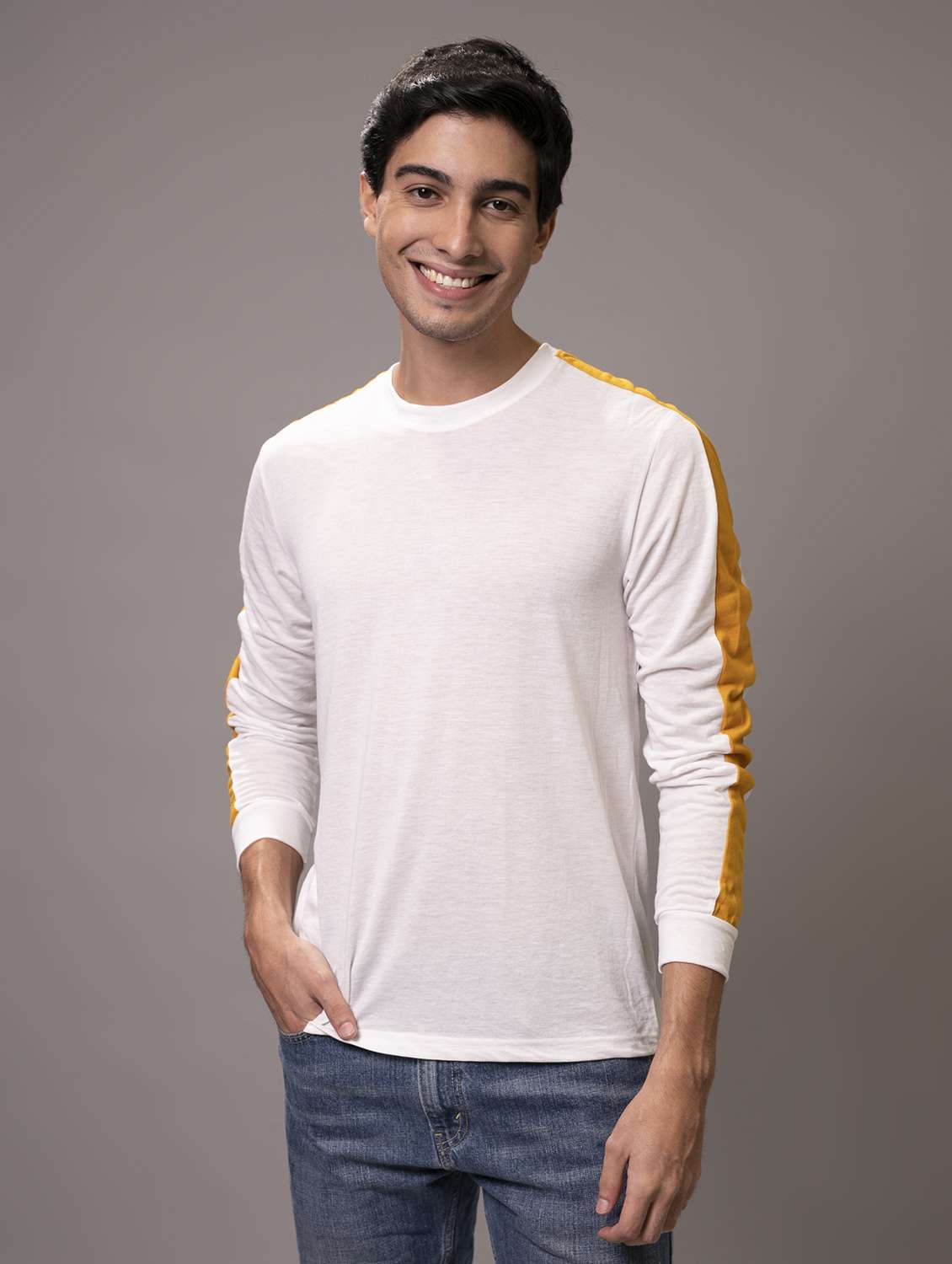 men white regular fit taped long sleeve t-shirt