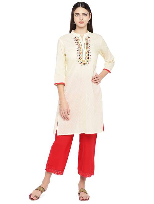 yoke embroidered straight kurta  - 16891223 -  Standard Image - 1 yoke embroidered straight kurta  - 16891223 -  Zoom Image - 1