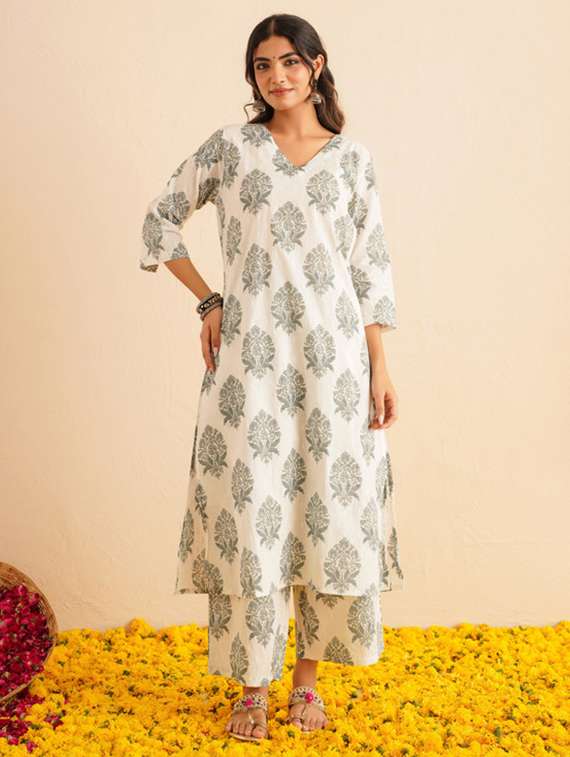 - Find gorgeous sets of ethnic wears in trending designs in white colors suitable for casual wear of occasions.