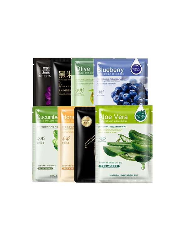 - » horec face mask (aloe vera,olive,cucumber,honey,blueberry,black mask,black rice,daisy giant water ) pack of 8