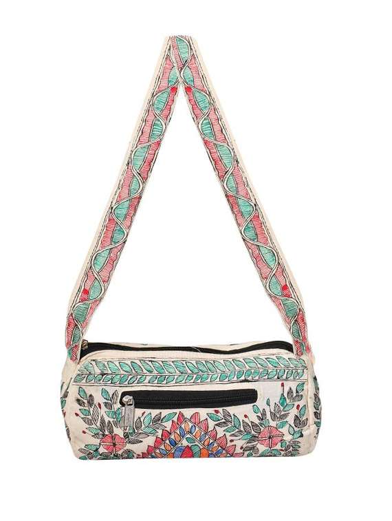 - » imithila madhubani style green based handpainted shoulder bags for women and girls