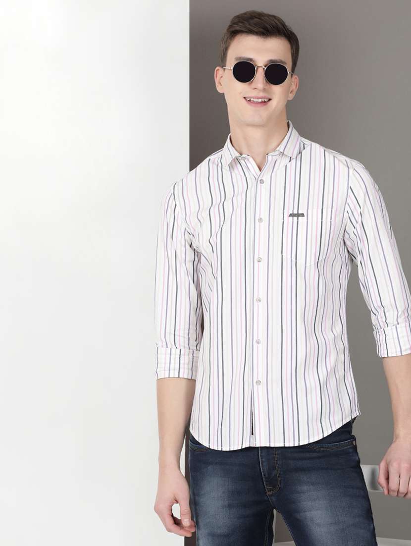 men striped long sleeve regular fit casual shirt