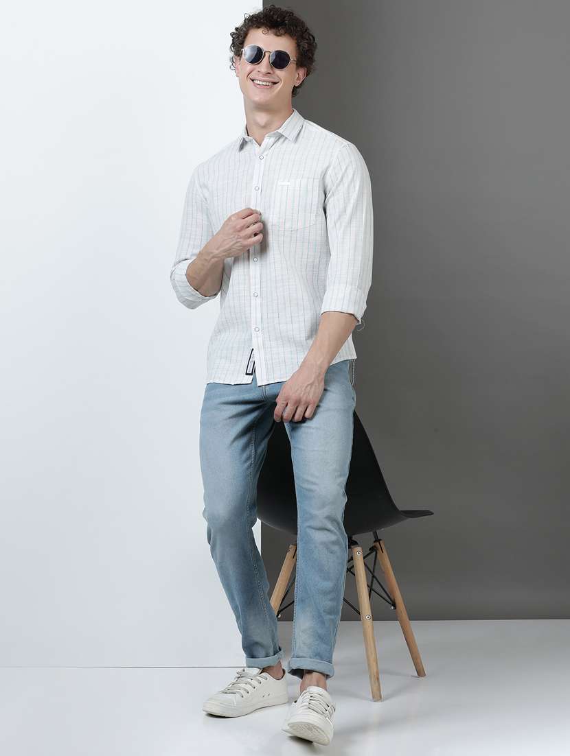 men striped long sleeve regular fit casual shirt