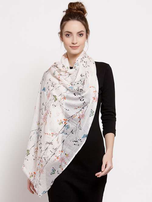 - Own a handwoven piece and round off your winter look with cozy stoles in white colours.