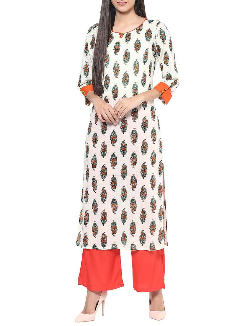 white cotton printed kurta - 11742292 - Very Small Image - 1