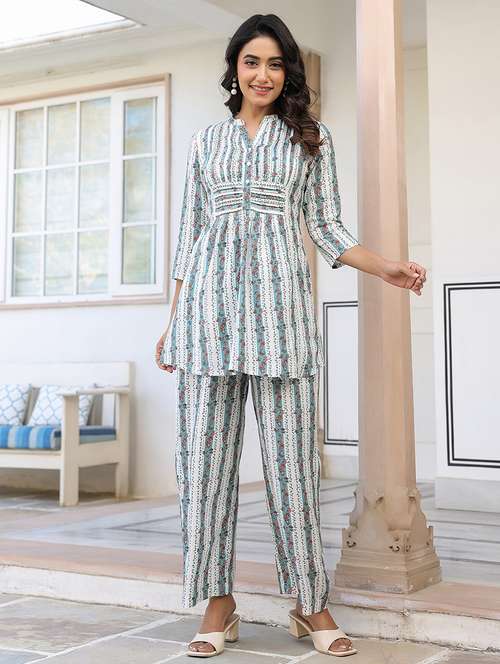 - » women white three quarter sleeve ethnic co-ord set