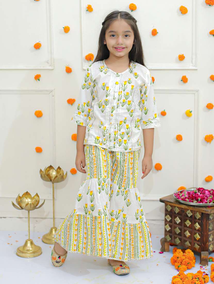 - » girls floral printed round neck kurta sharara set