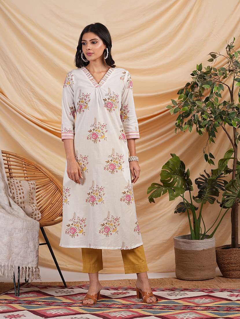 women v-neck floral printed a-line kurta