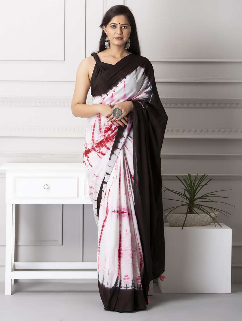 white cotton printed saree