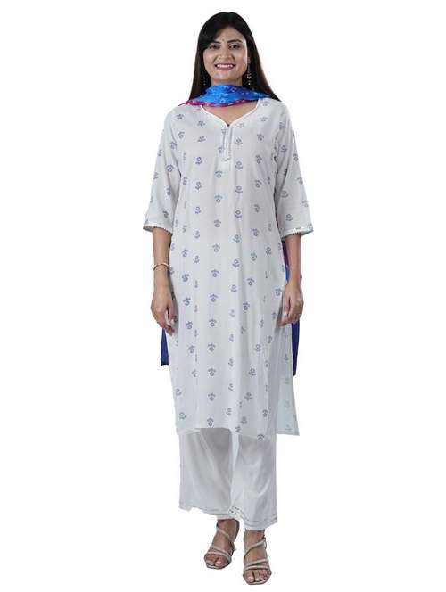 - Find gorgeous sets of ethnic wears in trending designs in white colors suitable for casual wear of occasions.