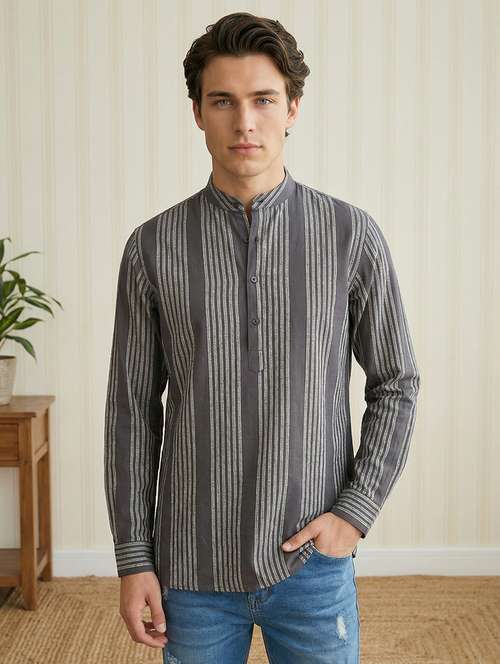 - » men striped mandarin neck short kurta