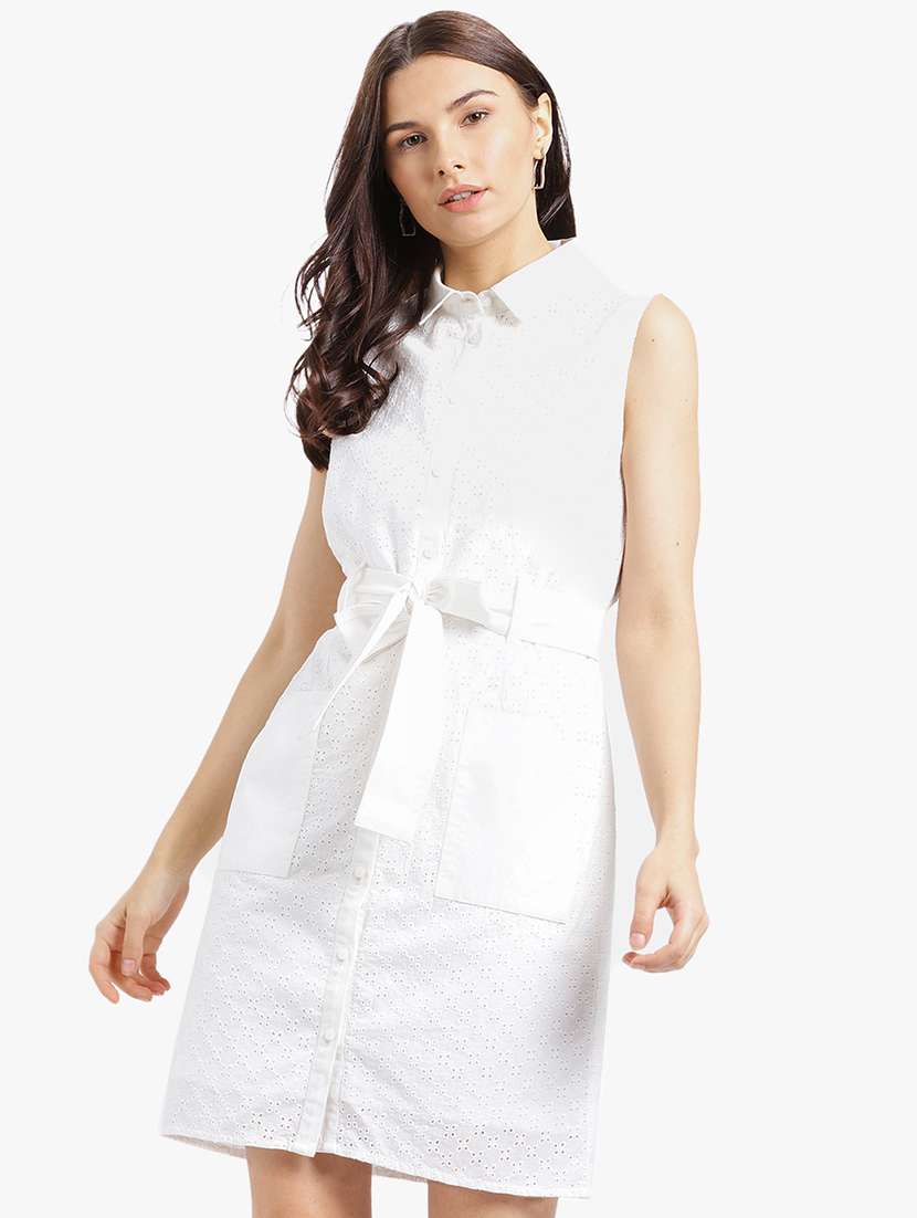 - » white solid cotton shirt dress