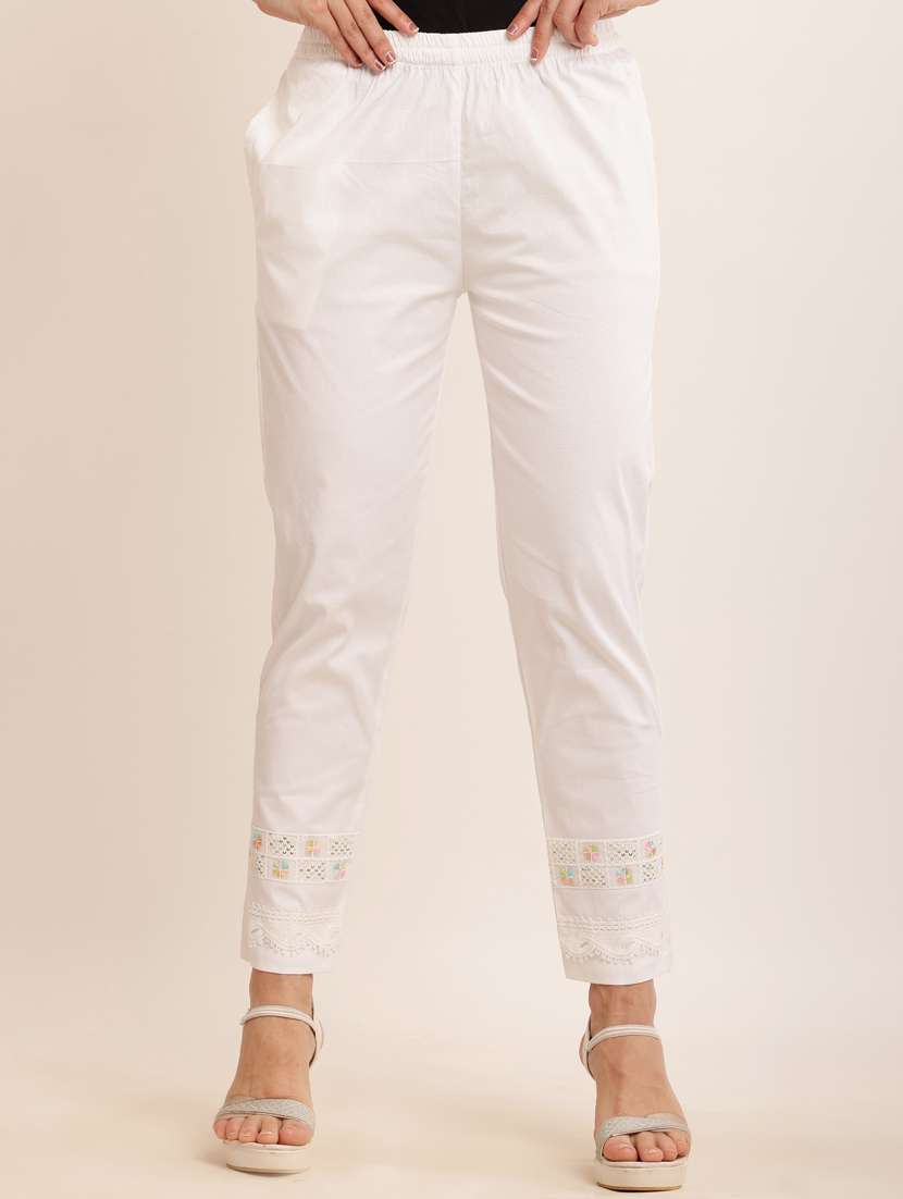 - » women white cotton lycra cigarette pants