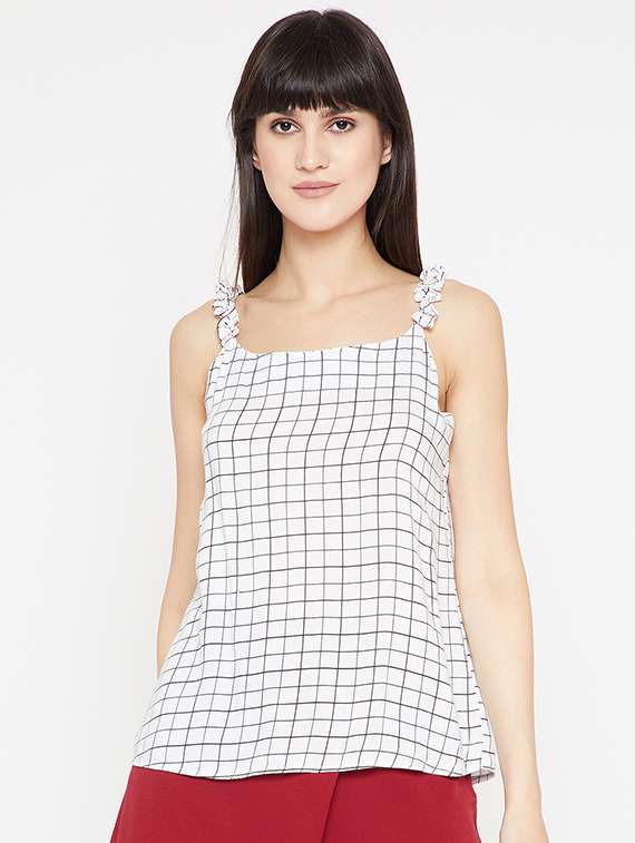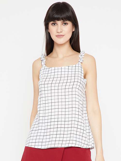 frilled cami neck grid top