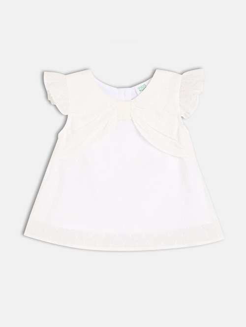 girls white solid round neck top