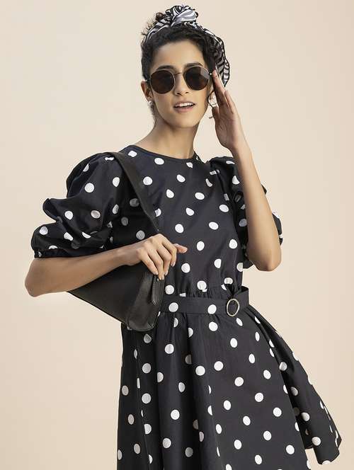 - Dress up in a soothing pattern and don this dress made of cotton material.
