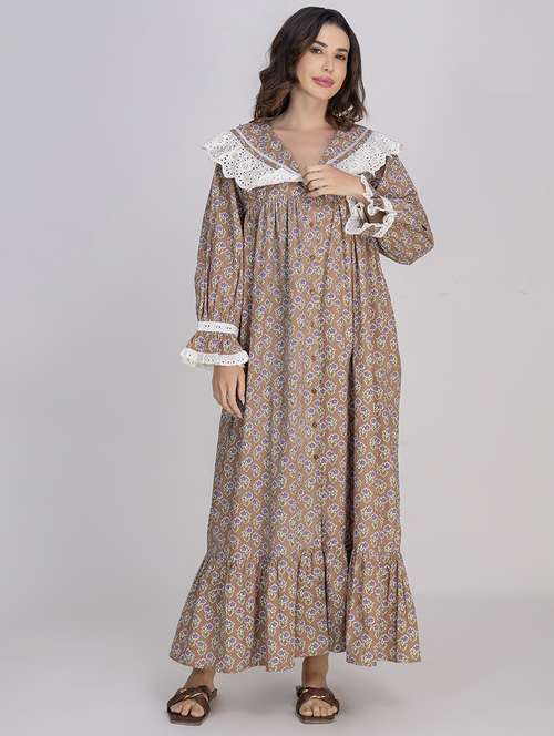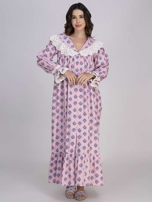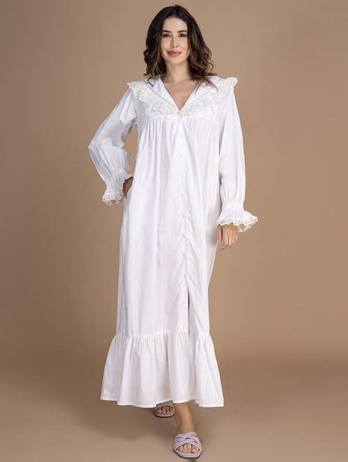 - » women solid lace detailed long sleeves nighty