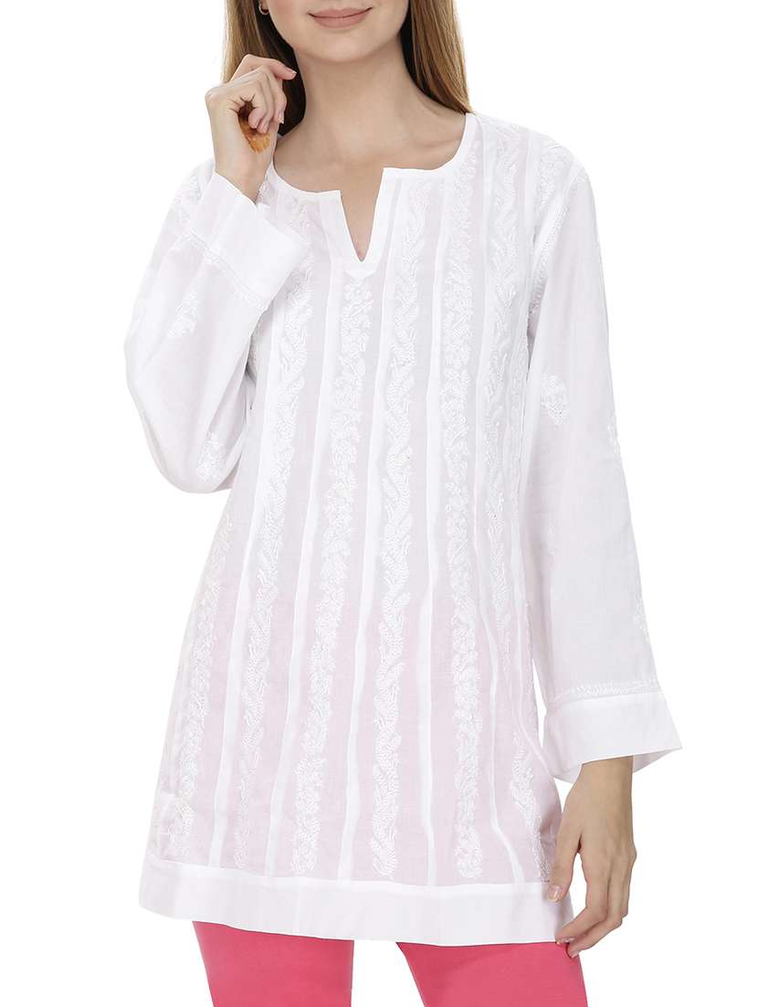 - » white cotton embroidered a-line kurti