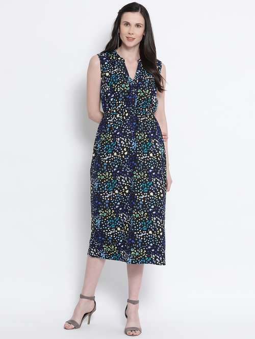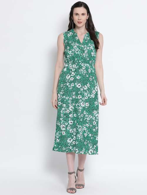 - Dress up in a soothing pattern and don this dress made of cotton material.