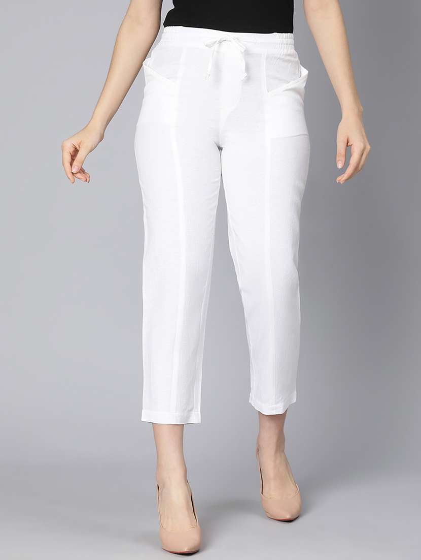 Make a room in your wardrobe for a new style pants from oxolloxo and get ready to get the perfect sleek long this season with Perfect white Linen Blend meld women tie-knot pant. It Is made with Linen Blend fabric , to be wearbale in all seasons and weather. It has a elasticated waist with atie-knot for a comfortable fitting, pockets on side for your esentials and a straight hem. Pair this with bright color top to get an all over look.