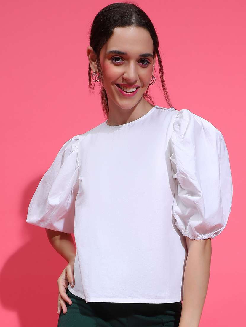 - » women white solids puff sleeves top
