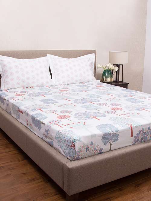 cotton king size bed sheet with two pillow covers - 17030240 - Very Small Image - 1