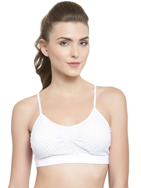 PrettyCat Workout in style,Dotted Print. This sports bra is an ultimate comfort wear for high impact activities.High support for gym and outdoor activities. Appropriate for high impact activities like athletics and aerobics.A designer sports bra that integrates style and comfort. Special sweat soaking cotton has been blended with lycra has been used to craft this exquisite piece. This non-wired bra has padded cups, which will give you support when you are doing all those strenuous cardios. Smoothstraps provide the much-needed athlete feel while you stretch and sweat.Key FeaturesAttractive look with bright colour.