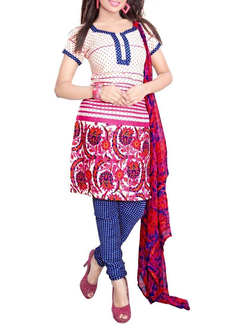 white cotton unstitched suit - 12223491 - Very Small Image - 1