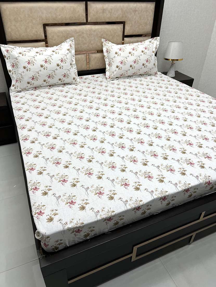 printed tc fitted king-sized bedsheet with elastic and 2 pillow covers