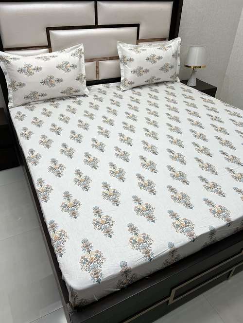 printed tc fitted king-sized bedsheet with 2 pillow cover