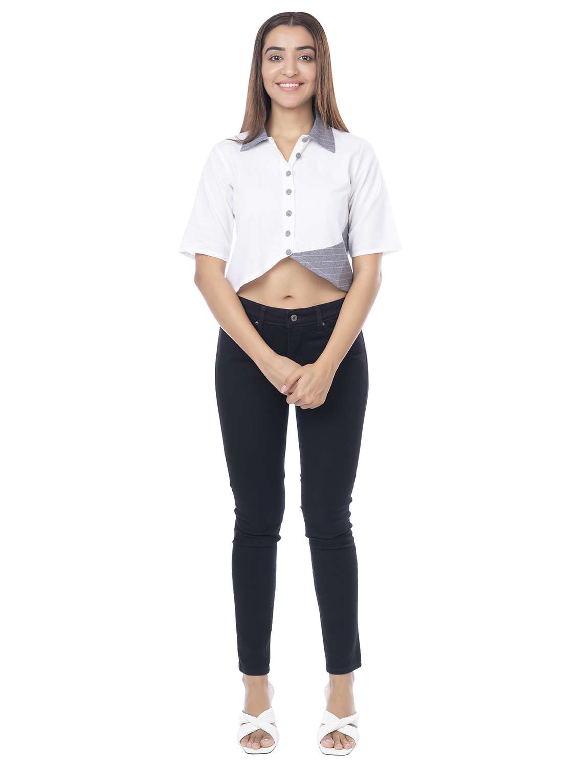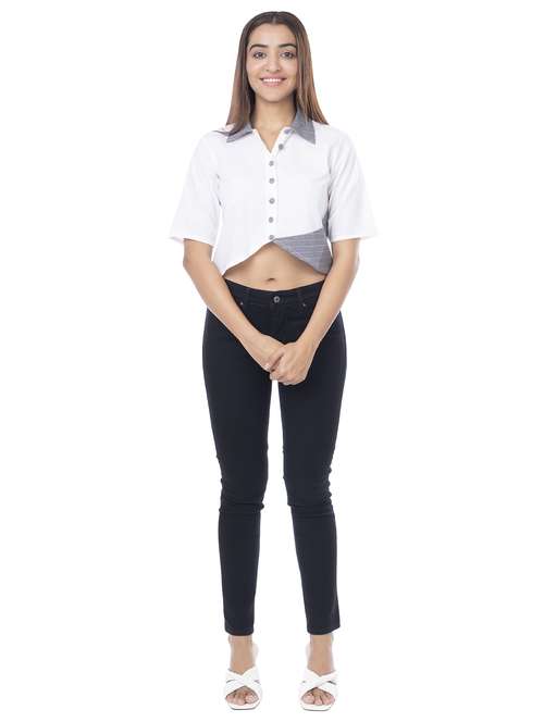 women's crop collared top