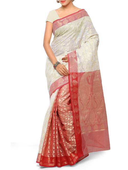 - » white cotton banarasi saree with blouse