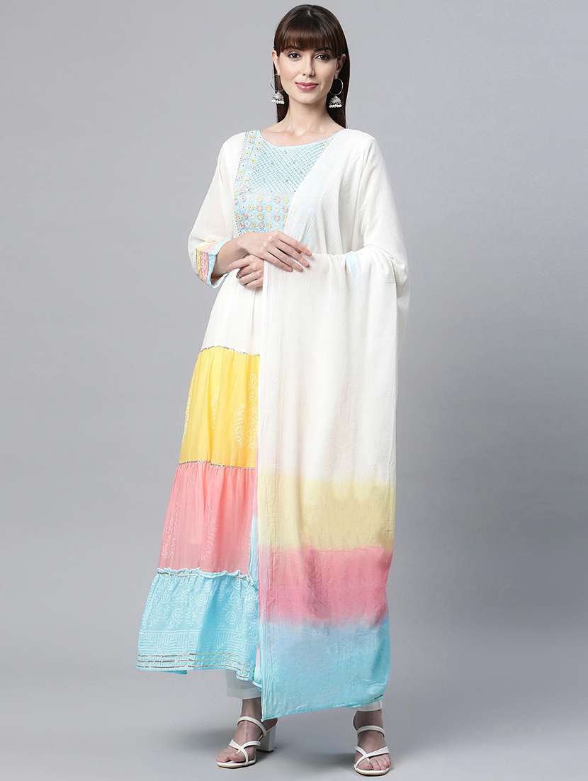 - » white & yellow embroidered kurta with printed dupatta