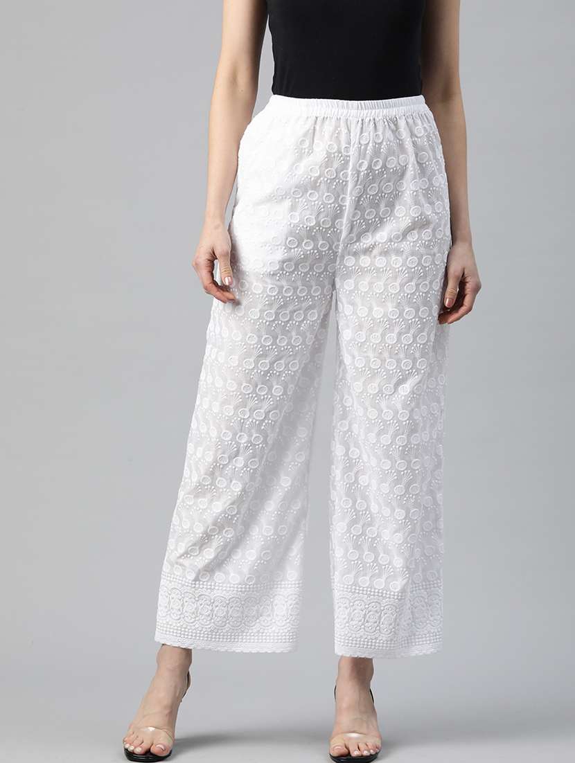 - » white self design detailed palazzo