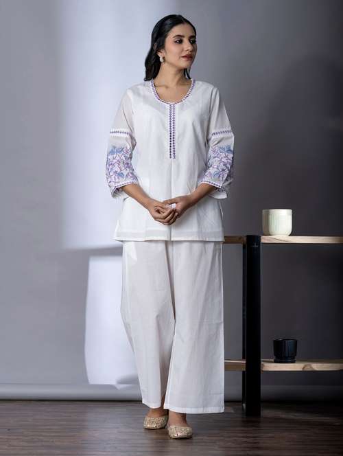 women white solid three quarter sleeve co-ords set - 21720290 -  Standard Image - 3 women white solid three quarter sleeve co-ords set - 21720290 -  Zoom Image - 3