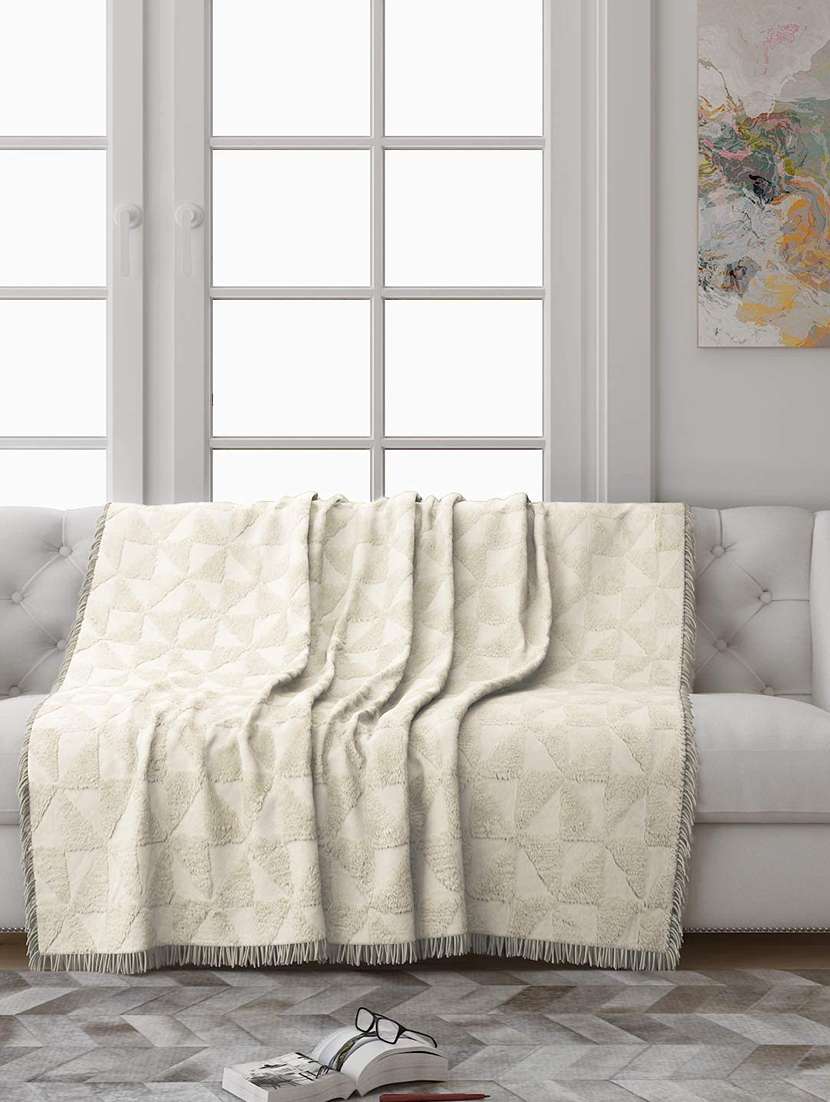saral home soft cotton unique firki design tufted throw/ sofacover -140x125 cm