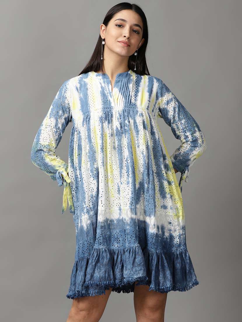 - Dress up in a soothing pattern and don this dress made of cotton material.